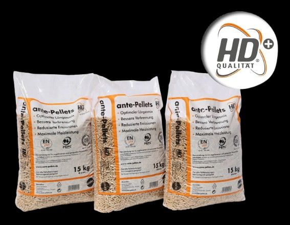 Palette mit 65 Säcken à 15 kg (975 kg) Premium-Holzpellets 6 mm. Hergestellt aus reinem Nadelholz – ohne Zusatzstoffe. Zertifiziert nach EN-Plus A1, DIN Plus, ÖNorm. Sehr niedriger Aschegehalt (< 1 %) und Feuchtigkeit (< 8 %) für saubere, effiziente Verbrennung. 100 % natürlich, nachhaltig und leistungsstark.
